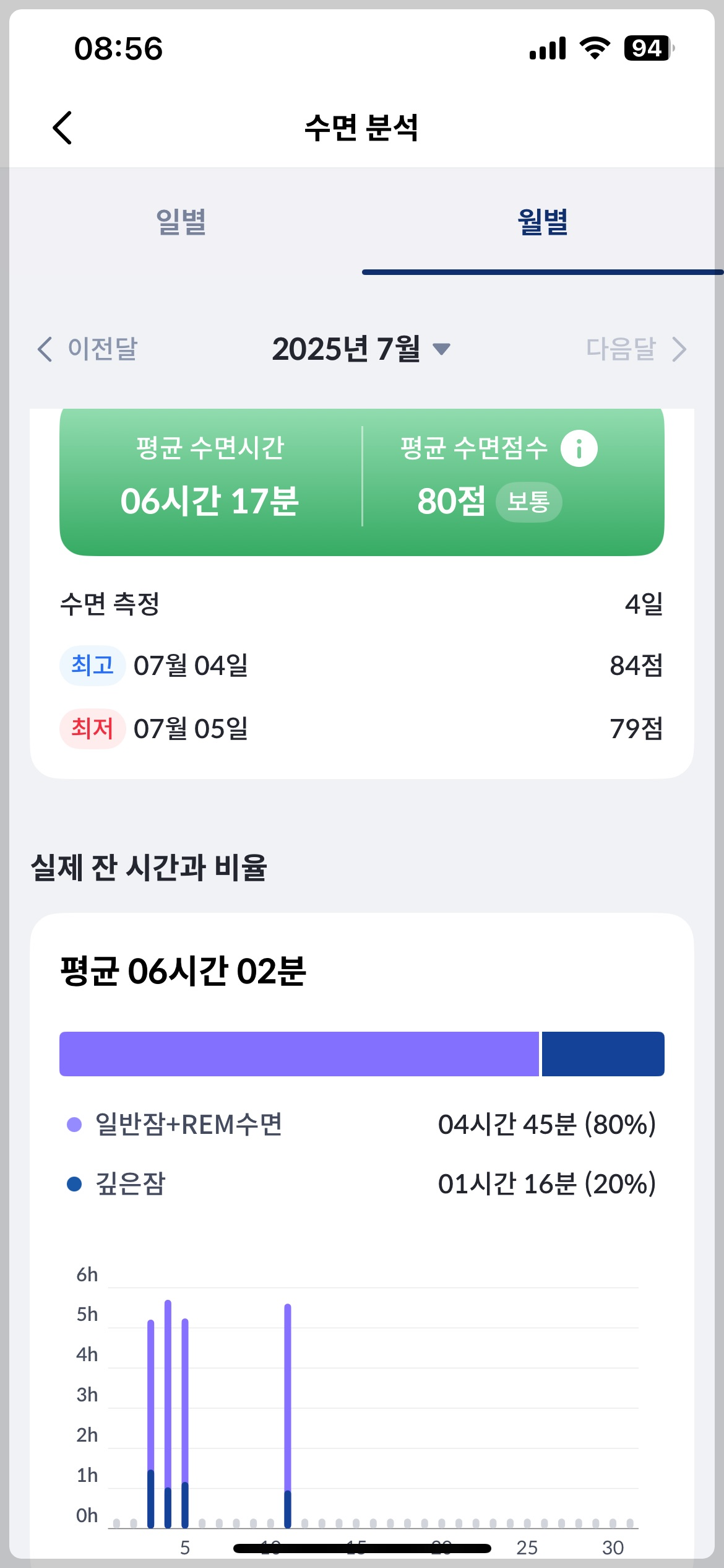 그 기록을 토대로 수면 질을 분석해줍니다.