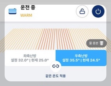 매트 좌우 부분의 온도를 따로 설정하여