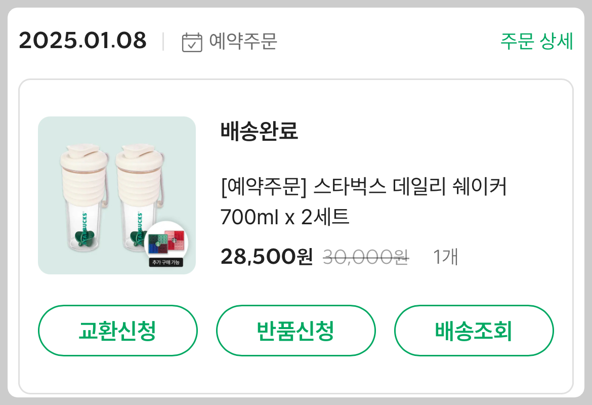 아직 작은 아기와 함께하는 일상이 정신이 없어서 간편하고 건강을 챙길 수 있는 단백질을 아침 식사 대신 먹어야겠다는 결심이 섰고, 단백질 쉐이커를 알아보던 중 스타벅스 어플을 통해 새로 나온 제품의 예약 구매를 진행하였다.
